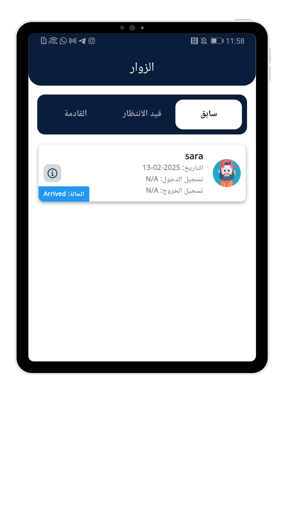 يتيح للموظفين إدخال بيانات الزوار مسبقًا عبر منصتنا الذكية أو من خلال تكامل التقويم.